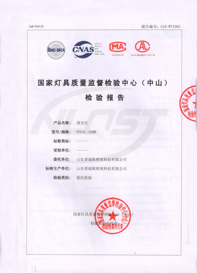 LED投光燈檢測報告