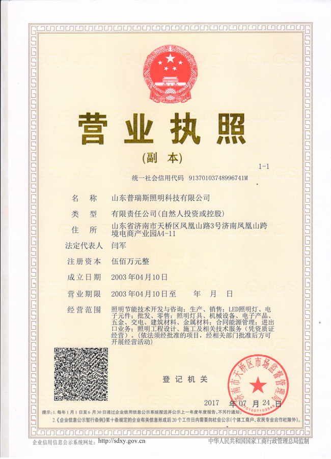 山東普瑞斯照明科技有限公司是專業從事工業照明燈具、LED照明燈具研發、生產及銷售的民營高科技企業。19年一直耕耘于照明行業;研發的工業照明燈具、LED照明燈具產..【詳情】